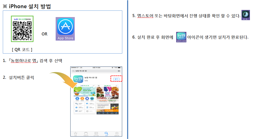 iPhone에서 농협 하나로 앱 설치하기