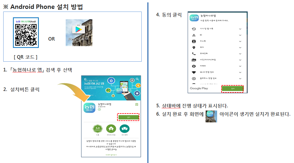 Android에서 농협 하나로 앱 설치하기