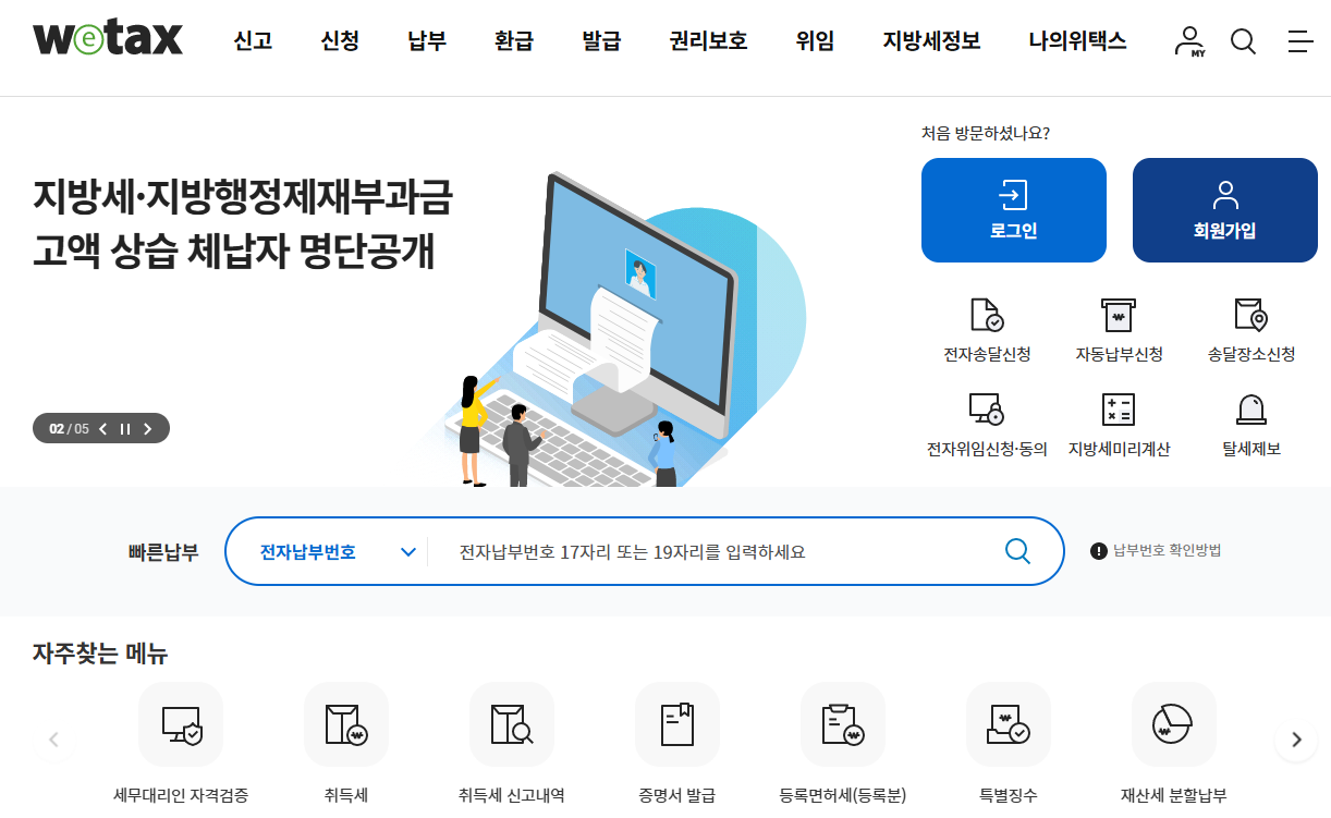 - 위택스 홈페이지 접속 : 먼저 위택스 홈페이지에 접속합니다.