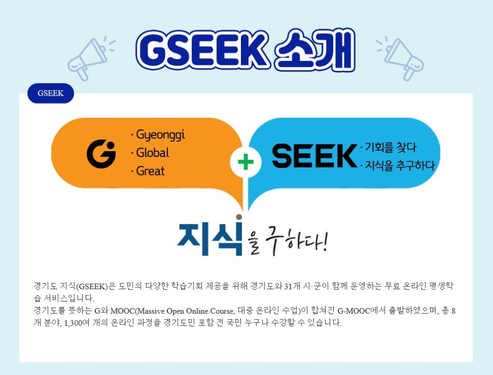 GSEEK는 경기도에서 제공하는 평생학습 포털로, 다양한 온라인 학습 기회를 제공합니다.