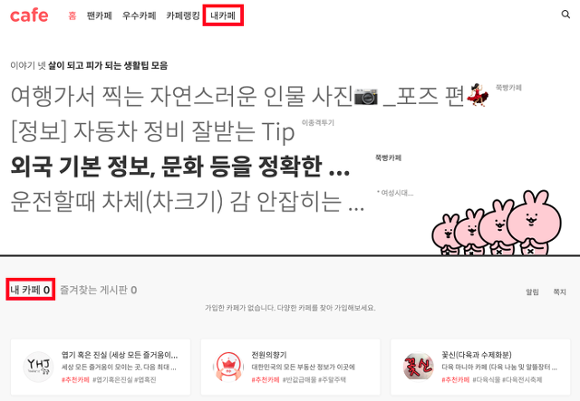 다양한 카페가 존재하며, 각 카페는 특정 주제나 관심사를 중심으로 운영됩니다.