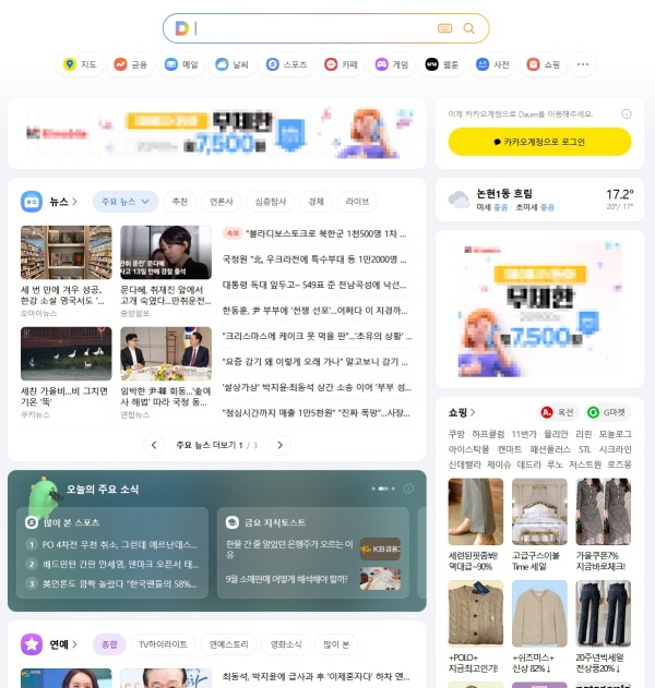 다음은 대한민국의 대표적인 포털 사이트 중 하나로, 다양한 서비스와 기능을 제공하고 있습니다.