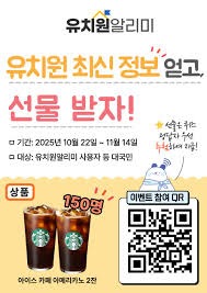 현재 유치원 알리미에서는 특별한 이벤트가 진행되고 있습니다. 2025년 10월 22일부터 11월 14일까지 진행되는 이 이벤트에서는 총 150명의 참가자에게 스타벅스 아이스 아메리카노 2잔을 증정합니다.