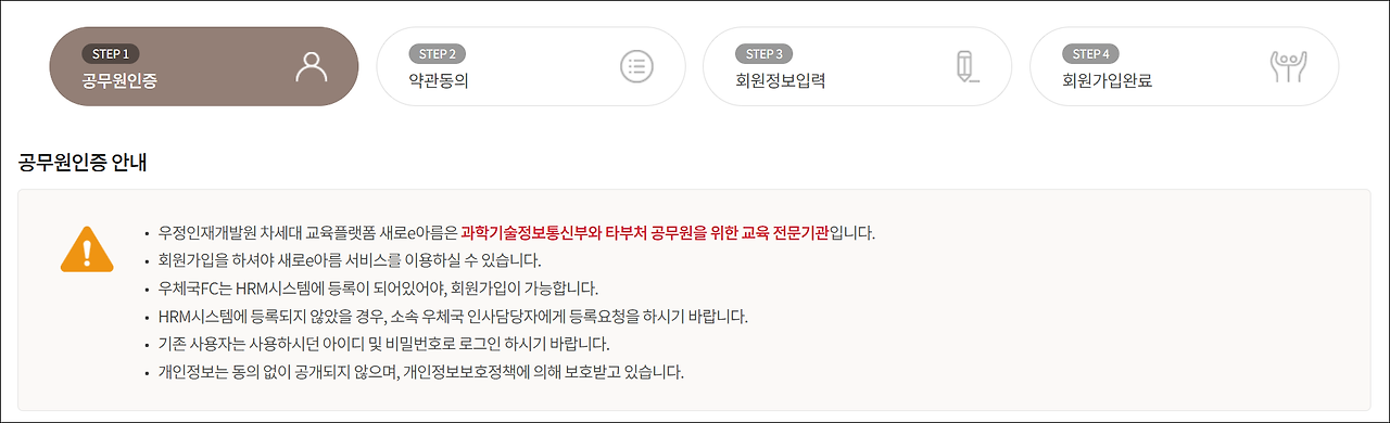 - HRM 시스템에 등록 : 공무원 인증을 위해 HRM 시스템에 등록해야 합니다.
