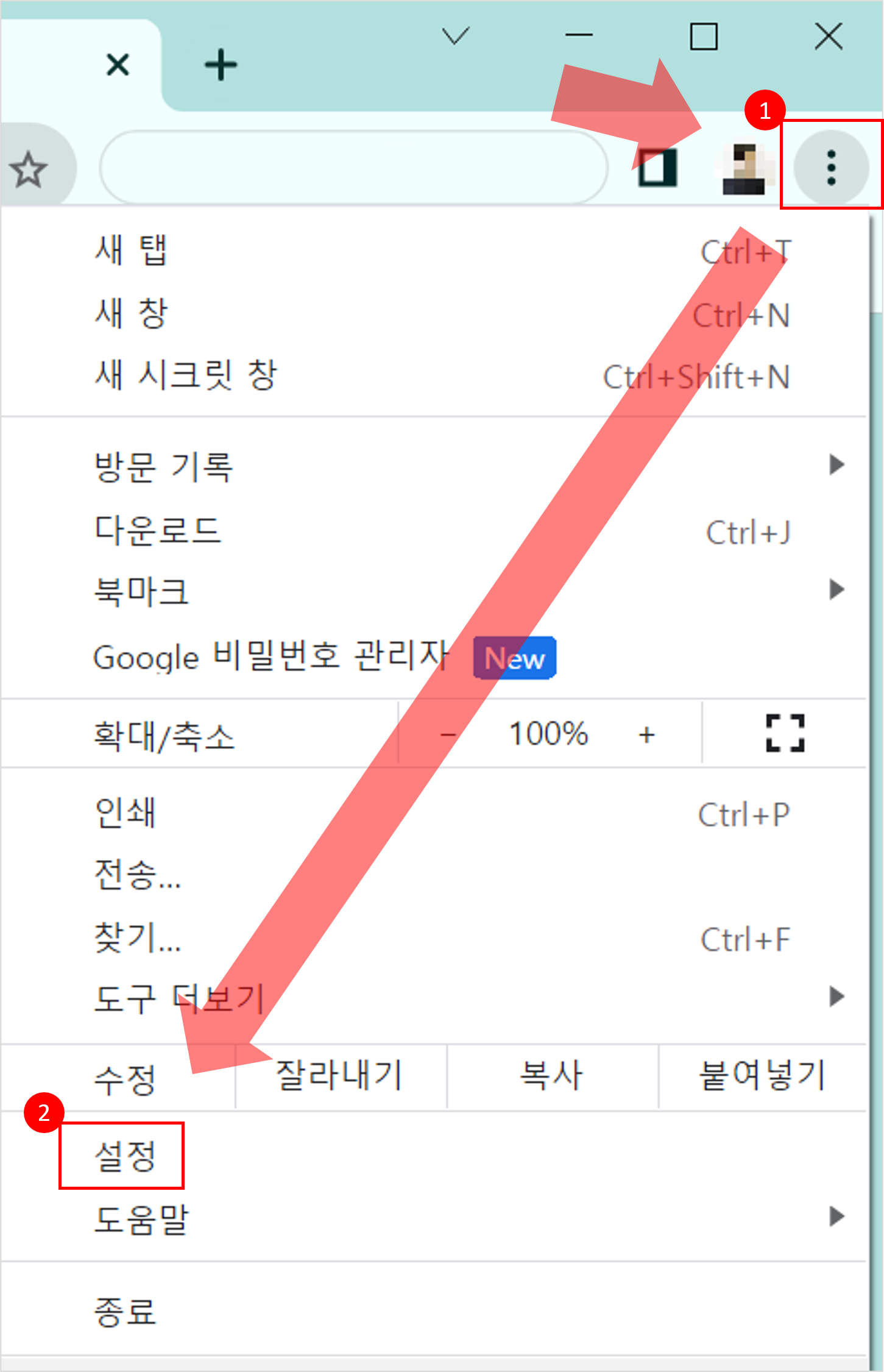 - 설치 진행 : 설치 마법사의 안내에 따라 설치를 진행합니다. 설치가 완료되면 크롬이 자동으로 실행됩니다.